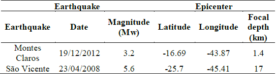 Table 5: Earthquakes recorded in Southeastern Brazil.