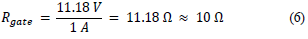 A IXD-609-PI driver was selected for the MOSFETs on/off signals. This driver delivers a maximum current of 9 A at the output, has maximum propagation delay of 35 ns, and can deliver and receive a trigger signal between -5 V and the positive voltage with which the device is powered [19]. The driver was powered using between 15 V and -5 V; however, in eq. (6) the resistance value between the controller output and the MOSFET gate is shown assuming a current of 1 A at the output of the driver and an effective voltage of a square signal from 15 V to -5 V. The resistor is included to reduce parasitic oscillation by the gate capacitance [20,21].