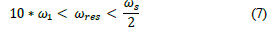 Having as fundamental frequency 60 Hz and switching frequency 18 kHz, a resonant frequency was selected for the filter equal to 4 kHz. Eq. (8) shows the value of capacitor considering the resonance frequency ωres, the input inductance L and the output inductance Ls [24], assuming values of 470 μH and 570 μH respectively.