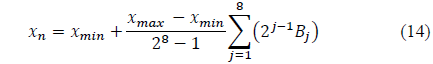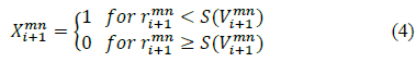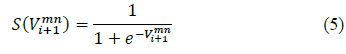 The updated position for real dimensions is calculated through eq. (3), and it must be in a confinement interval between Lim n min and Lim n max [13].Meanwhile, eq. (4) is used for the binary dimensions, where S is the probability that a particle can change its state to a logical one, and r i+1 mn is a random value in the range between 0 and 1. With that expression, a binary value (0 or 1) is obtained for each particle, which is discretized through the Sigmoid transformation in eq. (5) [15].