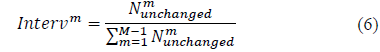 The intervention factor of the particle is calculated with eq. (6), where the sum in the denominator goes from 1 to M-1 because the number of iterations without change from the best particle is excluded to prevent the modification from being applied to that particle. If both aforementioned conditions are met, the particle is intervened, which means that its updated velocity is determined through eq. (7), instead of using eq. (2), which is applied if there is no intervention.