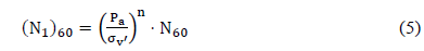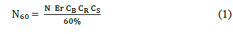 To standardize the number of SPT blows at 60% of hammer energy and other correction factors, the SPT test equipment and procedure was considered. Eq. (1) incorporates these corrections: