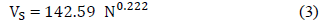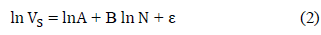 The potential equation (Vs = A.NB) expressed in natural logarithms results in a linear equation Eq. (2) of the form: