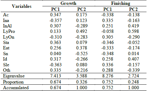 Table 1: Analysis of Principal Components 1 and 2 for the Growth and Finishing phases.
