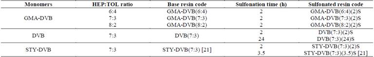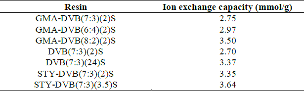 Table 3: Ion exchange capacity of the sulfonated resins.