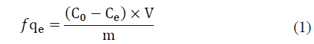 where C0 and Ce are the initial and equilibrium adsorbate concentrations (mg/L); V is the volume of solution (L); and m is the mass of adsorbent (g).
