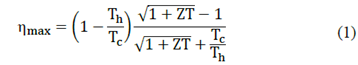 The maximum conversion efficiency is given as a function of ZT by Equation 1, where the higher the values of ZT, the higher the efficiency of the conversion of thermal energy into electrical energy by a given material [29].