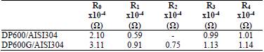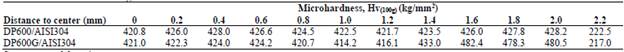 Table 4: Average nugget diameter and DP600/AISI304 welded joints.