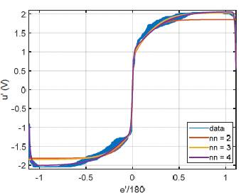 Authors used the Levenberg-Marquardt algorithm to train the Neural Network and divided the data randomly in three sets: 70% to train, 15% to validate the training, and 15% to test. Results in Fig. 6 regard a Neural Network with a single hidden layer with two, three, and four neurons. Two neurons miss both saturation zones, as shown in Fig. 6. Three neurons match better positive inputs but not the negatives. Four neurons match the whole behavior, which show the simplicity of the human actions to control the system. At the same time, the behavior in Fig. 6 shows the generalization capabilities of a Neural Network, because instead of a fuzzy or cloudy region from the human the Network provides a smooth actuating signal, which improves the stability.
