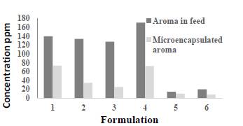 Table 1: Formulations of aroma (ethyl acetate) and natural aroma compounds with different encapsulating agents