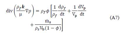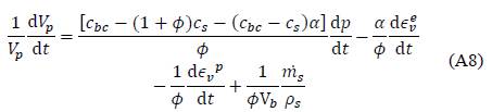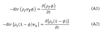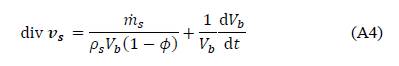 The fluid-mass and solid-mass balances are expressed by eq. (A1)-(A2).