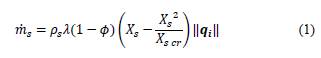 where ṁ s is the sand-mass rate, p s is the solid density, 𝜙 is the porosity, X s is the concentration of solids in the moving fluid, X s cr is the critical solid concentration, and q i is the fluid-discharge rate.