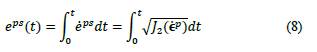where ė ps is the rate of e ps , J 2 is a tensor invariant, and Ė p is the rate of the plastic-strain tensor.