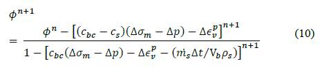 In eq. (9) a high flow velocity does not imply that solids are being produced. In other words, a solid matrix must be subjected to a certain plastic state and a flow velocity for the solids to be produced. Under sand-production conditions, an increase in the level of plasticity (e ps ) represents an increase in sand production. In eq. (10), the new porosity (𝜙 n+1 ) is a function of the mean stress, pressure, strains, and sand-production changes.