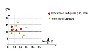 The ratio shown in eq. (1) was obtained from the d and H data measured at the main slope plumb lines. The percentage of the deformation along the construction was also calculated. Fig. 1 shows an example of horizontal deformation data of the crest of the nails soil execution of the Hospital da Beneficiência Portuguesa in São Paulo [18].
