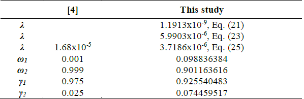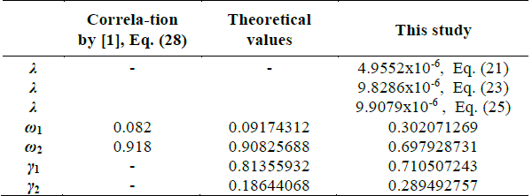 Table 4: Results of example 2 of [1] and their comparison with the theoretical values of the parameters and the results obtained in this study.