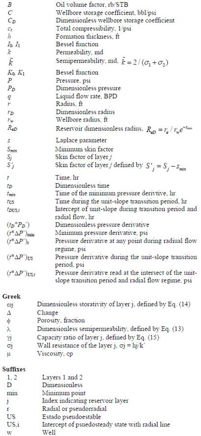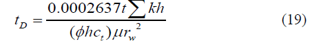2.The correlations developed here can be used together with the TDS technique described by [3] for a more complete reservoir characterization because, in late radial flow, the total transmissibility of the formation can be determined. By knowing the capacity of each layer or group of layers, it is possible to know the transmissibility of each layer.