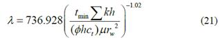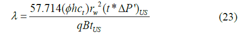 The dimensionless permeability, dimensionless storativity ratio, and flow capacity ratio are obtained by the following: