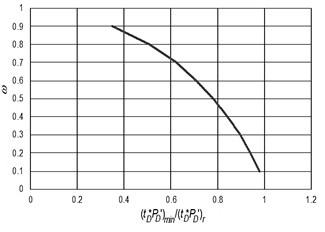 Figure 5: Dimensionless storativity coefficient as a function of the ratio of the minimum pressure derivative value and the pressure derivative during late radial flow regime