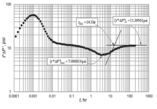 Figure 8: Pressure derivative versus time log-log plot for example 1 reported by [1]