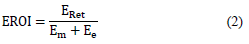 The work is presented as follows, in Section 2 the aim of the work are presented. In the Section 3 the main used variables and parameters are showed. Section 4 shows the definition of the Energy Returned On Investment and its calculation. In the Section 5 the present method is described. In the Section 6 the simulation of the model are presented and described. Finally, Section 5 presents the conclusions of the work.