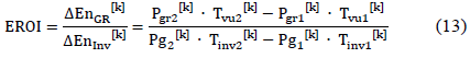 Where Tvu [k] and Tinv [k] are respectively the lifetime of the renewable resource and time investment in manufacturing this source, from extraction of resources to its operation. For their energy profitability, increasing renewable generation must exceed expenses generation, which is mainly influenced by lower electrical losses when performing a distributed generation [2].