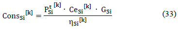Where PSit[k] is the effective thermal power without considering heat loss, losses and mechanical CeSi in [𝑡/𝑀𝑀𝑀𝑀ℎ] is the specific consumption of fuel and GSi in [TEP/Tn] tons of oil are needed to produce one ton of fuel.
