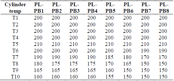 Table 3: Temperature profile of the extrusion of the samples PL - PB.