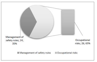 A greater predominance is shown with the occupational risks variable (65%) and, in the case of the management of safety standards, there are 14 articles (35%), which shows that there is a greater variety of studies in relation to the risks of the chosen sector, see Fig. 5.
