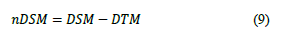 The nDSM represents the relative height to the ground of objects above the earth's surface and is defined as shown by eq. (9).