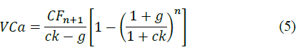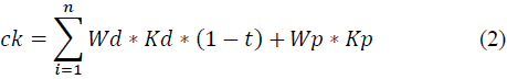 The appropriate discount rate for cash flow is called the Weighted Average Cost of Capital (ck) and for its calculation it is necessary to weight the equity capital and the amount of debt and multiply them by the cost of each of them [16,20]. We consider the discount rate ck as the company's weighted average cost of capital, according to the eq. (2).