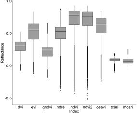 - [30] Haboudane, D., Miller, J.R., Tremblay, N., Zarco-Tejada, P.J. and Dextraze, L., Integrated narrow-band vegetation indices for prediction of crop chlorophyll content for application to precision agriculture. Remote Sens. Environ. 81, pp. 416-426, 2002. DOI: https://doi.org/10.1016/S0034-4257(02)00018-4 [URL] 🠔