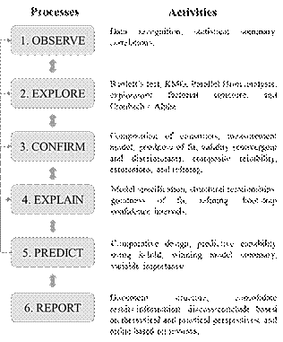 Additionally, the study case provides empirical evidence derived from six systematic processes that incorporate exploratory data analysis, SEM (structural equation modelling), and machine learning methods in R. Thus, this paper also uses essential analytics resources to stimulate and enable the teaching/learning and practice of mining psychological/managerial constructs in R. Likewise, we share the scales employed to stimulate future uses in other samples or contexts (see Appendix 1).