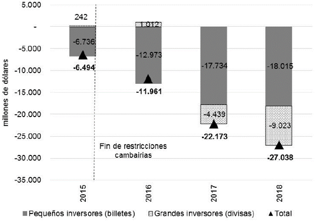 Con este fin, y en los primeros meses de asumido el nuevo gobierno, se implementaron una serie de medidas de flexibilización financiera y cambiaria que buscaban facilitar el ingreso y la salida de flujos de capital de la economia argentina (Rua & Zeolla, 2018).