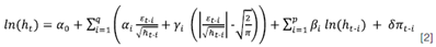 Cuadro 1: Resultados de la regresión E-GARCH(1,1)-M (QML)