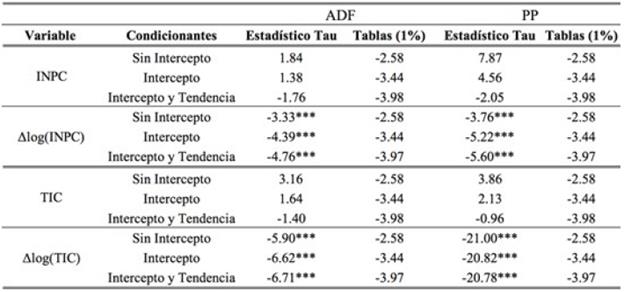 Anexo 1: Pruebas de Raíz Unitaria para el INPC y el Tipo de Cambio