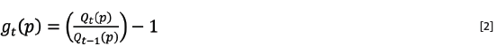 Donde L' t (p) es la pendiente de L t(p), la curva de Lorenzy µt es el ingreso medio. Comparando los dos tiempos, t y t-1, la tasa de crecimiento del ingreso en el p-ésimo cuantil estará dado por: