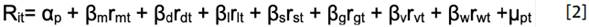 Our dependent variable is mutual fund and pension plan performance. To evaluate mutual fund and pension plan performance, we use the multi-index model, based on an extension of Jensen's Alpha model (1968) in a similar way to Gruber (1996), Mittelstaedt & Olsen (2003) and Blake, Lehmann & Timmerman (2002). Jensen's Alpha model (Jensen, 1968) is based on the traditional capital asset pricing model -CAPM-. This traditional model is a single-index model (Jensen, 1968) expressed in Equation [1] as follows: