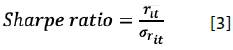 Where Pit ¡s the average yearly excess return of fund i at moment t over the risk-free asset and σrit is the standard deviation of excess returns of fund i at moment t over the risk-free asset. This measure determines reward per unit of total risk and requires normal distribution in the investment returns, generating invalid results during periods of negative excess returns such as those where the stock market falls (Israelsen, 2005).