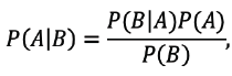 donde P(A) es la probabilidad a priori de A, P(A|B) es la probabilidad a posteriori de A dado fi, B,P(B|A)es la verosimilitud de A dado By P(B) ≠ 0. Entonces, este teorema permite actualizar las creencias sobre un evento A, dado que se tiene información sobre otro evento B.