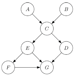 Todas las variables junto con sus arcos dirigidos forman un grafo acíclico dirigido, donde un grafo es acíclico dirigido si no hay un camino A 1 → … → A n tal que A 1 = A n .