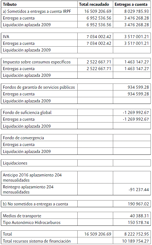 El segundo grupo de ingresos está compuesto por los tributos que son cedidos parcialmente. En este caso, solo se cede un porcentaje determinado de la recaudación a las comunidades autónomas de régimen común. Es decir, una parte de la recaudación se integra dentro del presupuesto de la Administración Central y la otra formará parte del prepuesto de la Generalitat -última columna de la tabla 3-. Además, es aquí donde actúan los diferentes fondos con el objetivo de reducir los posibles desequilibrios de financiación entre comunidades autónomas. Como se puede observar, mediante la aplicación del fondo de Garantía se complementa la financiación de los servicios públicos fundamentales -este saldo es positivo en una cuantía de 934 559 millones de euros-. Aun cuando la actuación del resto de fondos, y en especial del fondo de Suficiencia Global, disminuye los recursos transferidos a través del sistema. En este sentido, los recursos que son transferidos a través del fondo de Garantía quedan completamente anulados por la actuación del fondo de Suficiencia, el cual reduce los ingresos transferidos en 335 393.39 millones de euros. Además, la actuación del fondo de Convergencia se ha considerado nulo en virtud de que rara vez han incrementado los recursos para la Comunidad Valenciana -para este ejercicio económico su efecto es nulo-. La aplicación de los diferentes fondos ha permitido comprobar el grave error que significa mantener el sistema de financiación para los intereses valencianos.