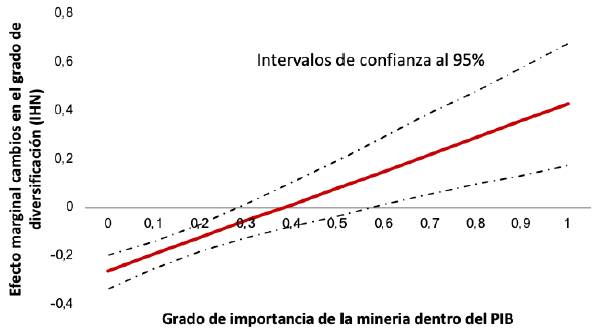 Gráfico 4: Función de influencia parcial de la diversificación por niveles de importancia minera