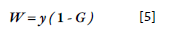 Donde y es el ingreso medio de la sociedad y G es el coeficiente de Gini en la distribución del ingreso. La SWF en [5] es la llamada función de bienestar social de Sen y cumple con las condiciones [2] y [3]. El índice de Gini en este contexto considera el ordenamiento por percentiles poblacionales en relación con la distribución general del ingreso de la economía, lo que satisface la condición de incrementos en la utilidad marginal de la sociedad respecto a transferencias del ingreso considerando la ubicación de grupos poblacionales ordenados.