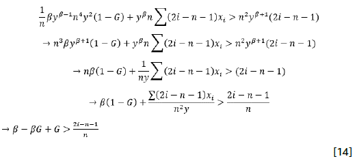 Por ende, la función W=y β ( 1 - G) es paretiana si:
