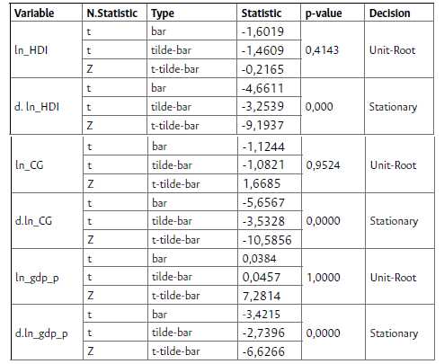 Tabla 7: Pruebas de raíces unitarias Im-Pesaran-Shin