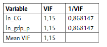 Nota: se acepta la hipótesis de que no hay problemas de multicolinealidad fuerte en el modelo dado que el valor medio del factor inflación varianza es menor que la "rule of thumb" del valor de 5. Fuente: elaboración propia.