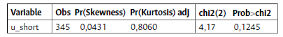 Nota: la hipótesis nula es la distribución normal de los residuales de la ecuación de corto plazo representados en u_short. Fuente: elaboración propia.