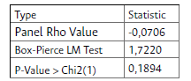Nota: la prueba involucró los efectos fijos, H0: es la ausencia de correlación serial de primer orden, aquí se rechaza esta hipótesis y se acepta que los residuales de la ecuación de largo plazo tienen problemas de correlación serial. Fuente: elaboración propia.