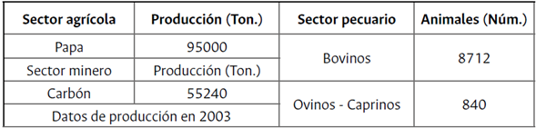 Durante las décadas de 1980 y 1990, la economía del Municipio de Tausa sufrió un cambio, producto de la crisis del sector agrícola y la consolidación de la minería a mediana escala, que desplazó a la minería tradicional. La economía campesina tradicional de décadas anteriores fue remplazada por una estructura productiva basada en el monocultivo de papa, la cría de ganado vacuno y la minería de carbón, en detrimento de una producción diversificada como se visualizó en las décadas anteriores (Alcaldía Municipal de Tausa, 1996). La tabla 2 evidencia la configuración de la estructura productiva de Tausa en 2004.